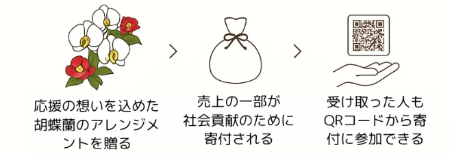 なお、社会貢献サービス「花結」の本格始動に先駆けて、2025年には贈る側、受け取る側双方が参加できる寄付付き商品の販売をトライアル展開し、2025年12月26日に「令和6年(2024年)能登半島地震に係る災害義援金」への寄付を行いました。